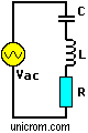 Una señal alterna (proveniente de una fuente de tensión de corriente alterna) puede ser considerada como un generador de frecuencia variable, y al conectar un circuito RLC en serie a esta, hay en un efecto de ésta en cada uno de los componentes. En el condensador aparecerá una reactancia capacitiva y en la bobina una reactancia inductiva, dadas por las ecuaciones: