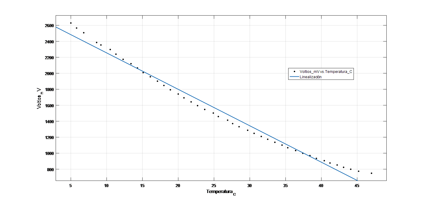 Los datos fueron llevados a las funciones polyfit y polyval de Matlab para realizar la gráfica: