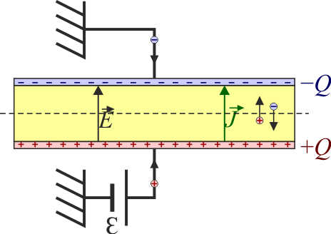 Esto quiere decir que el medio dieléctrico, al no ser perfectamente aislante, es atravesado por una intensidad de corriente